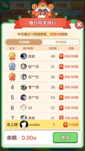 2、打开排行榜就能看到完整榜单,你可以查看自己的当前排名以及获得的奖励数额。