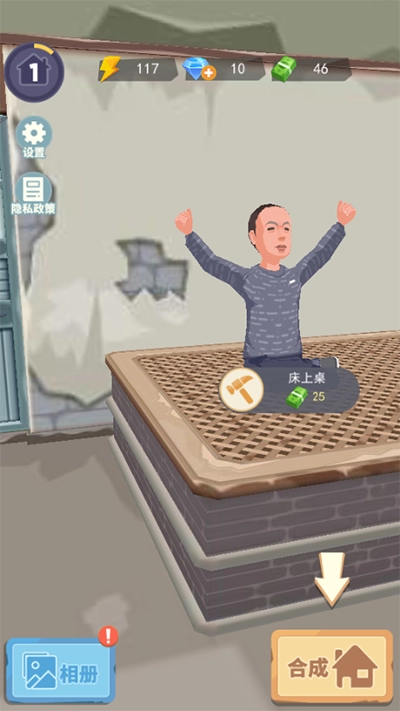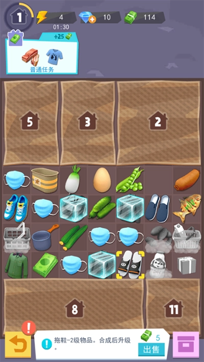 3、执行任务期间,左上方会显示任务进度,完成任务后能获取对应的金额;要是你急于装修房子,也可以点击下方的食物或衣物进行售卖,毕竟装修房子离不开金钱支持;此外,当金钱积攒到足够数量时,点击左下角的返回按钮,就能进入房间。