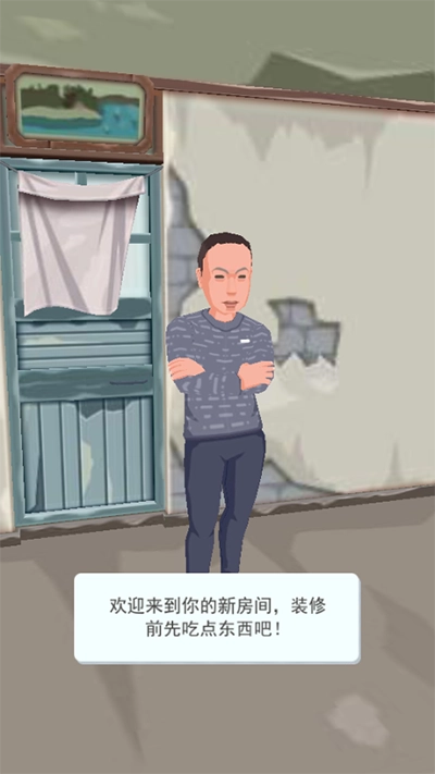 1、进入游戏后,先按照系统的引导前往一间未经装修的破旧房屋,在着手装修之前,得先解决一下吃饭的问题。