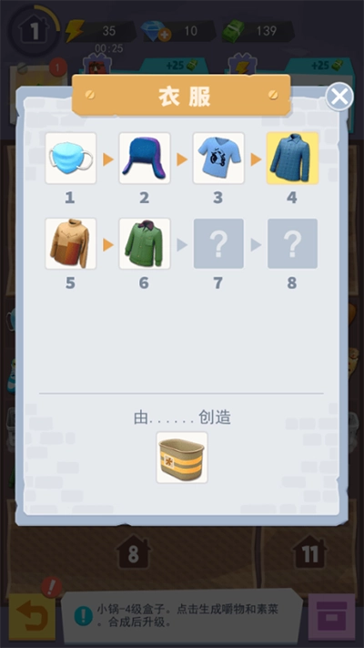 6、若想进行升级,需用篮子制作出8种不同的衣物。