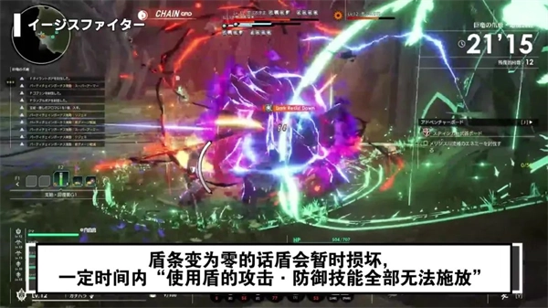 不过一旦盾牌被击破,盾条就会变成红色,并且在盾条完全恢复之前,盾牌都会处于破损状态,在此期间无论是进行防御还是攻击,所有需要用到盾牌的技能都无法使用。