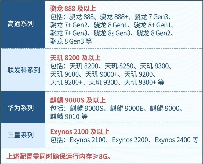 当前版本属于较早的版本,性能优化方面还有待完善,目前仅支持性能不低于以下配置的设备进行体验: