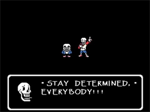 这件事过后,Chara在岛屿的尽头和那位义警对峙,等待着属于自己的审判。经历了最后一场较量(其实是Papyrus正在拍的电影里的一场戏),Crossbones接着说出了地下世界的现状:这一切源于一场事件,当时的国王召集怪物们打破屏障,结果却丧失了勇气,最后被女王放逐了。当被问到接下来该怎么做时,Chara只说了一句“继续”。看到Chara还没有明确的答案,Crossbones便离开了,但他揭开了自己的真实身份——原来是Sans,还说要是事情进展不顺利,星尘岛随时欢迎他们留下来。水晶泉