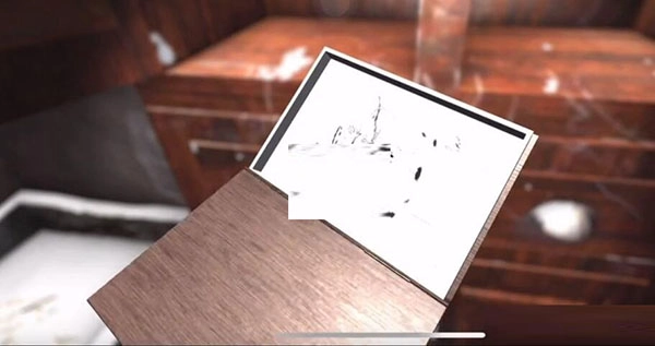 1.进入屋内后,找到桌子旁边的残诗二,接着点击其旁边的板子,即可拿到残诗一