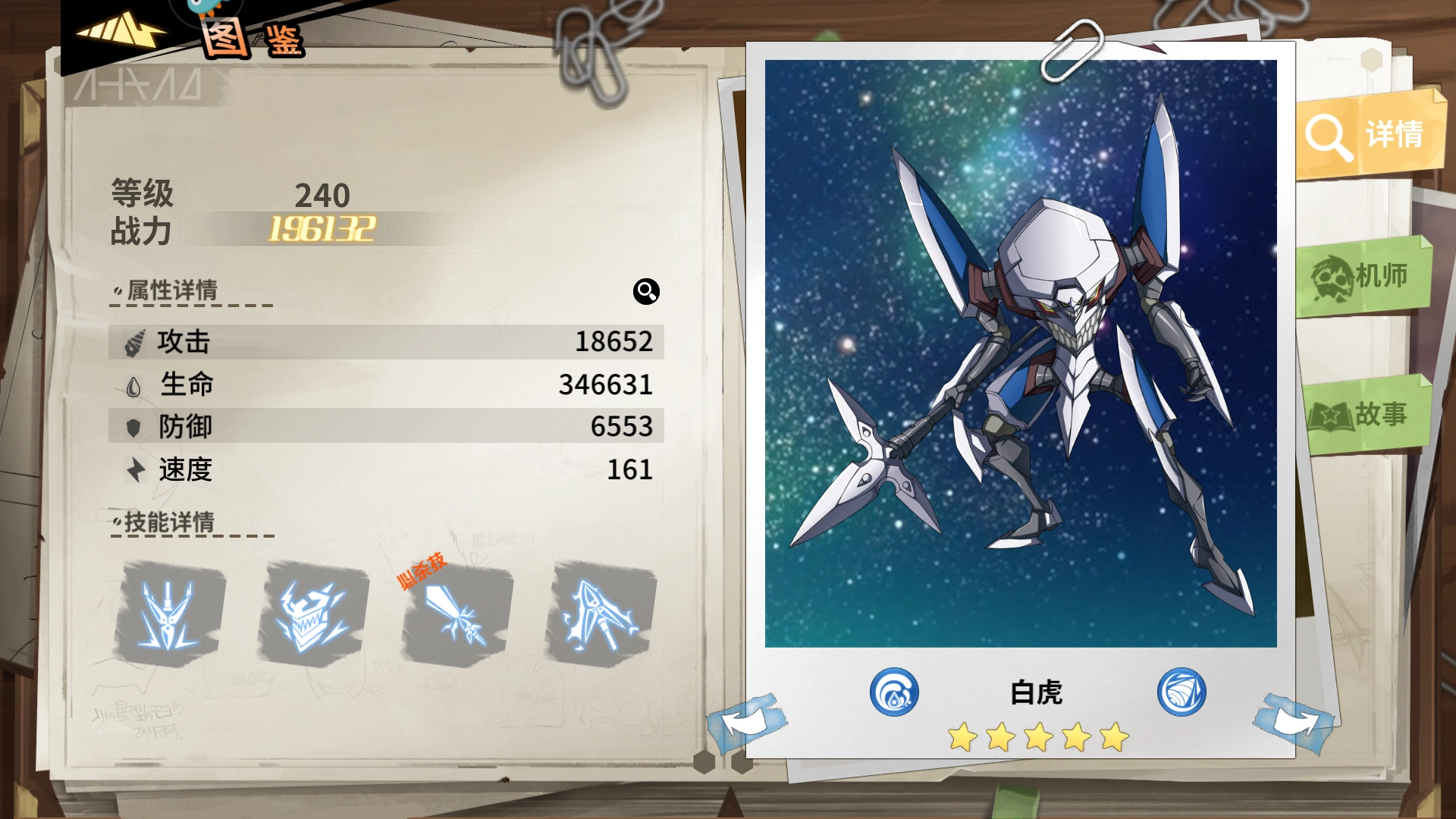 白虎在场时所有【破损】伤害提升30%。