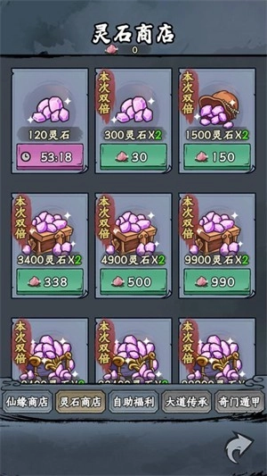 3、灵石在游戏里是最珍贵的货币,用途广泛且消耗量大。获取途径主要有仙缘兑换、开采灵石矿、完成主线任务获得奖励、开启礼包,甚至也能直接充值购买。另外,右上角的灵石商店每小时可领取120灵石,仙师宝箱每两小时也能领取一些。灵石的主要花费方向包括在仙师商店购买五行包和制作图纸、在玲珑坊购置资源,以及在灵溪谷进行抽奖等。