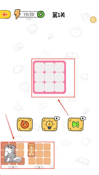 1、先观察猫咪拼图的外形特点和所占格数,据此判断它大概能放在哪些区域,这样就能减少盲目尝试的情况。