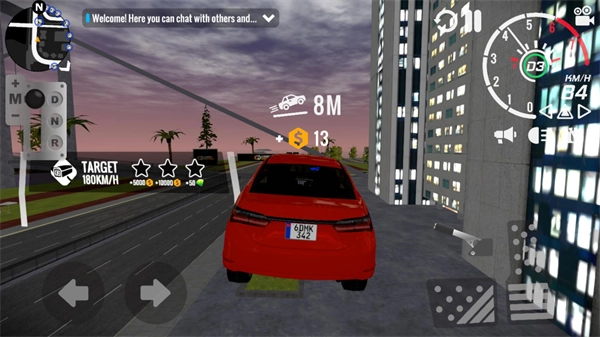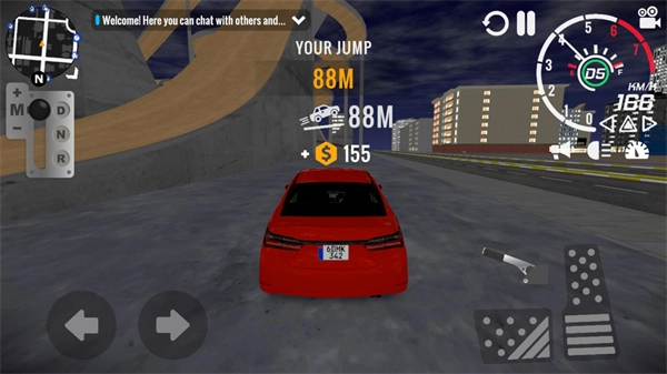 3、正式开始后,点击左侧区域可操控车辆转向,右侧区域用于控制油门与刹车,而前进和后退则需通过点击左边的档位来切换。