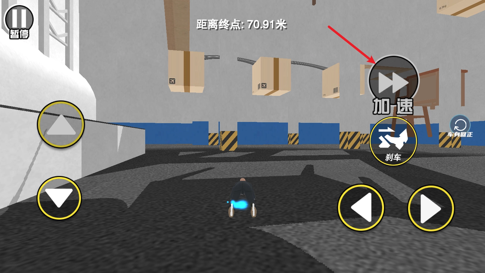 2、当速度过快时,我们可以点击刹车来降低速度,从而避免发生撞击或冲过头的情况。