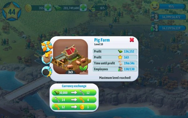 3、能够灵活地进行货币转换,还可以到其他小岛去参观学习,掌握新的建筑技巧,从而轻松地获取财富。