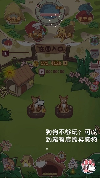 2、把高等级的狗狗放进水井里玩耍,就能持续不断地获得金币,这些金币可以用来解锁休息屋、餐厅、蘑菇房和玩乐屋。