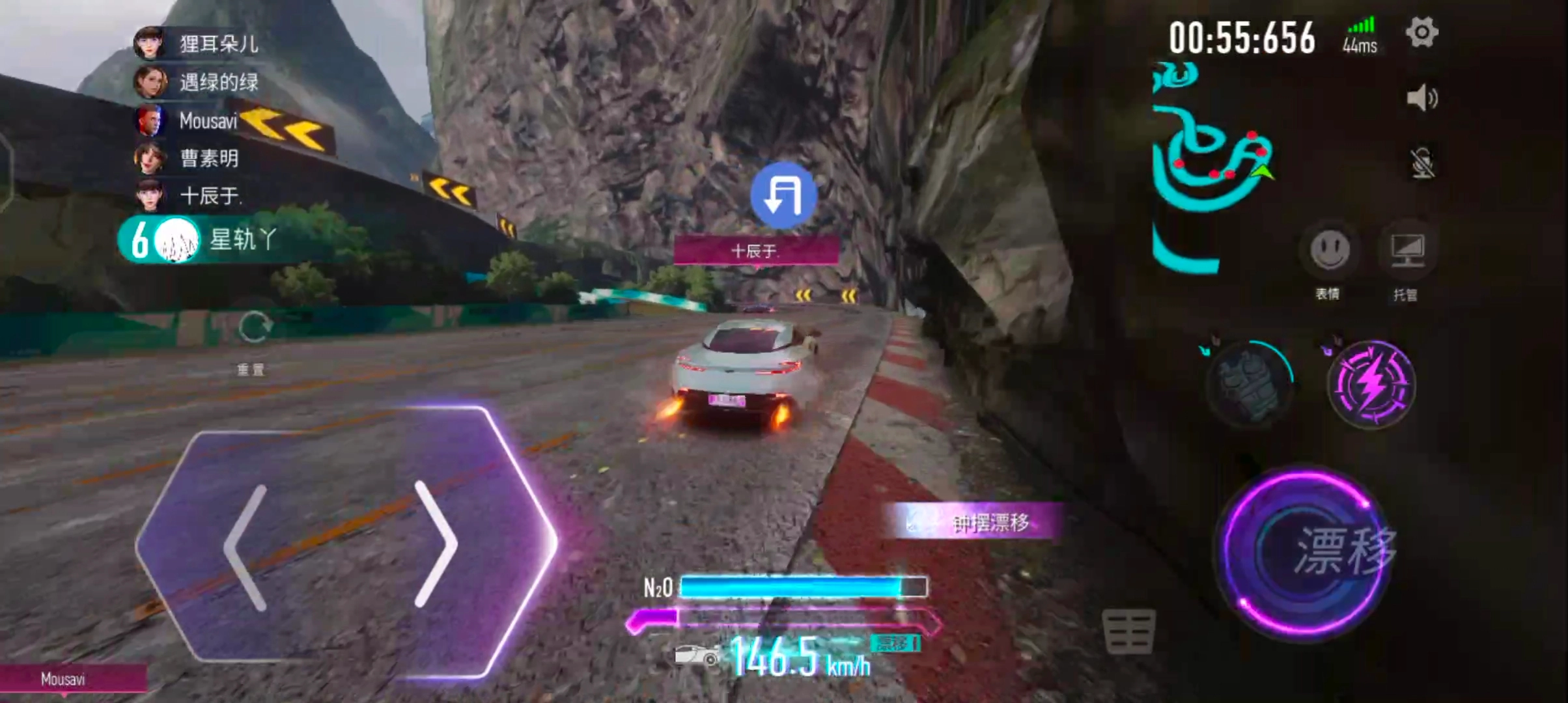 3、超燃的竞速玩法,玩家可以通过漂移积攒氮气用于冲刺,在赛程末尾全力加速完成最后的冲刺。