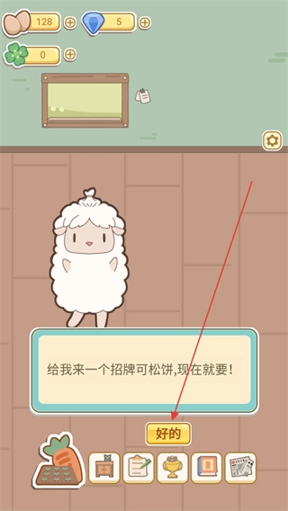 3、当有顾客进店时,依据顾客的描述与要求接收订单,点击“好的”按钮来为小羊开展制作工作。