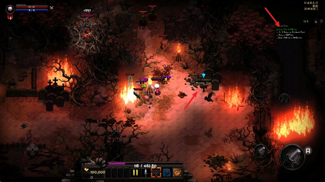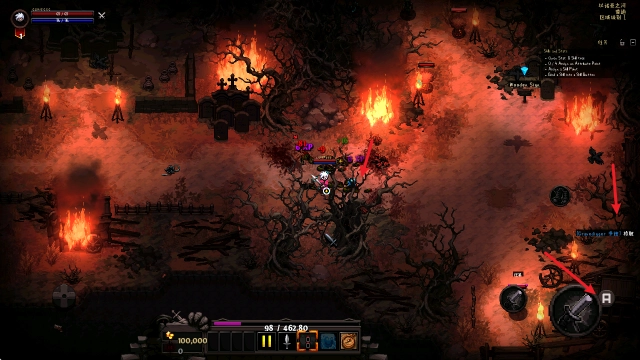 3、击败敌人后,地上也会随机掉落各种物品,靠近后点击右侧A键即可拾取。