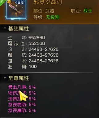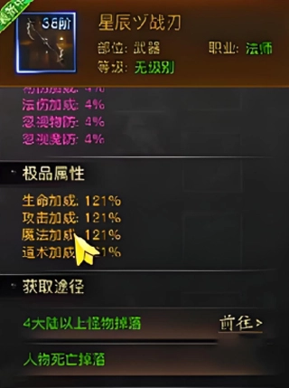5、星辰战刃这个武器目前也是可以达到高品质的,在游戏当中使用这个武器的话,后期最多是可以增加各项属性到120%的数值,可以说在目前这么多的武器效果当中,星辰战刃绝对是排名都能够排上前几名的,武器强度的上下限都很高,后期大家可以提升它达到至尊的等级,而且本身这个武器效果好的情况下,在掉落的概率上面也不是很大,所以大家如果想要获取的话,去刷怪的时候要多找一些高等级的怪物,而且掉落的地点是比较固定的,这个就需要大家去多多碰运气了。