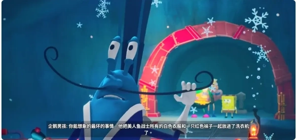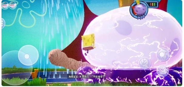 最后的环节会运用到海绵宝宝的新技能“泡泡攻击”,这个技能是在战胜“机械珊迪”之后,由泡泡人赠予的。