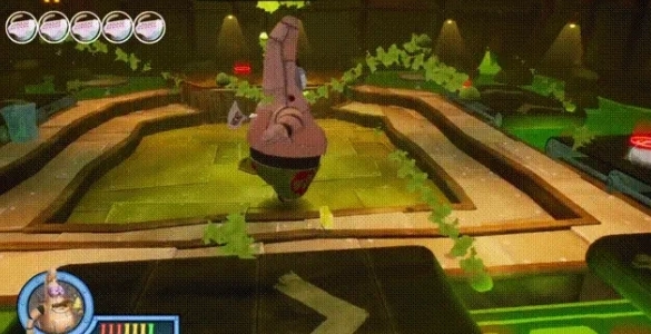 打掉三滴血后就会切换派大星登场,进入二阶段的珊迪招式会有所增加,不过它的头会掉下来,这时候派大星就能捡起那个机械大头了。