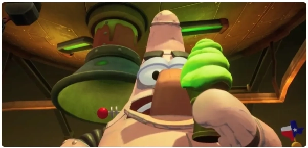 机械派大星的远程攻击方式是投掷冰淇淋,当它处于休息状态时,我们就可以上前用终结巴掌将其解决。