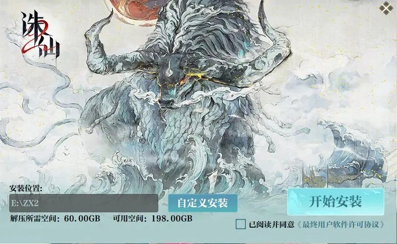 完成上述步骤后,勾选相关协议,选择合适的安装位置(需确保该位置有不少于60GB的可用空间),然后点击“开始安装”按钮。待安装流程结束,就可以启动游戏了。