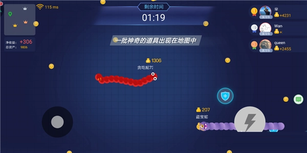 在这个特殊玩法里,蛇的体型不会随游戏进程改变,开局前你能自行决定初始长度和携带的游戏货币数量。每场对局共有十位参与者,你们将在限定的三分钟内展开争夺。你的核心任务是尽可能多地收集这种货币——一旦被对手击败,你当前持有的所有货币都会从头顶掉落。当时间结束时,拥有货币数量最多的玩家将成为最终赢家。