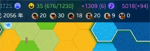 游戏主界面的左上角设有科技槽,玩家可在此选择要研究的科技内容;科技槽的左侧是市政槽,当文化值积累到一定程度时,就能在这里选择市政。界面右上角会显示可移动的单位,或者呈现其他可供选择的事件。左下角区域会展示当前选中单位的名称、行动选项,以及【行动力】【防御力】【经验】等属性信息。而右下角则分布着小地图和地块的详细信息面板。