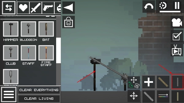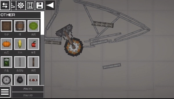 2、进入游戏界面后,点击左上角的菜单按钮,在地面上添加两个物品。