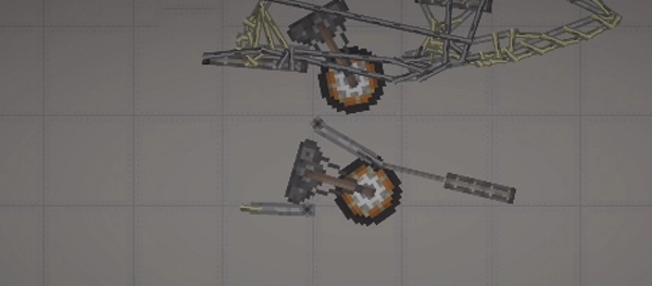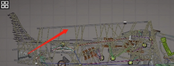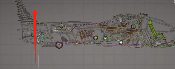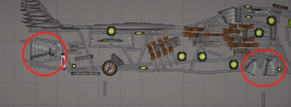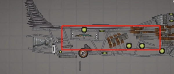 3、需要留意的是,这种不稳定的结构必须加装支柱——也就是机头中间的长铁块,将其设置为无重力且不发生碰撞的状态,然后连接到机头外壳就可以了