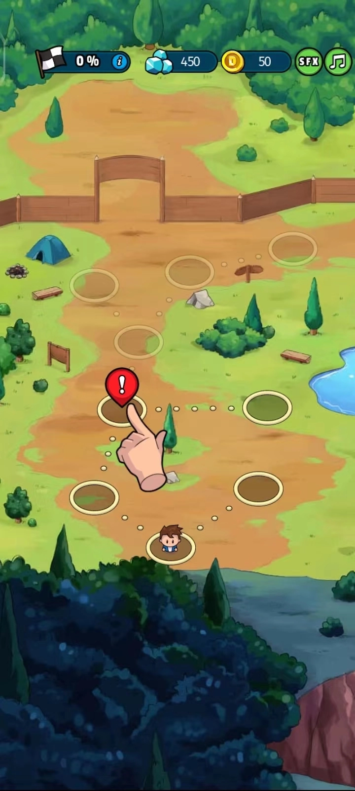 7、完成操作后回到主界面,接着去探索那些带有感叹号标识的区域。
