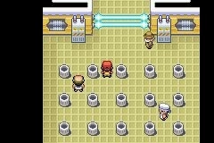 11.下船后船便驶离了,此时可以用居合斩砍断道馆旁的树木,进入道馆发起挑战。枯叶市的道馆属性为电系,需要先在馆内的垃圾箱中找到两个开关,才能与馆主对战。(开启第一道电门时建议先存档,因为一旦点错,电门就会重新关闭)馆主马志士的精灵阵容为:等级21的顽皮蛋、等级18的雷丘、等级24的电伞蜥以及等级27的电击魔兽。