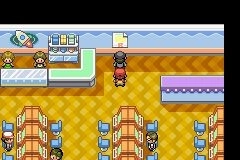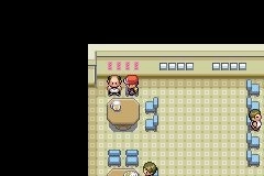 16.一直向左行进,然而通道内的守卫阻拦无法通过,只好经由房间里的地下通道前往彩虹市。与下方餐馆左上角的人交谈可获得代币盒,前往游戏厅击败右上角的火箭队小兵后,调查其身后的海报会出现隐藏通路。