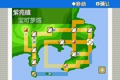 14.穿过岩山隧道后向下行进,便抵达紫苑镇。进入镇上的宝可梦塔,在2楼会遇到小夏,战胜他后继续向上攀登。
