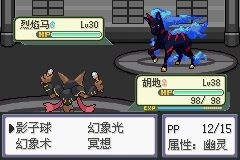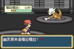 20.接着使用飞空术返回紫苑镇,此刻在宝可梦塔就能发现野生的宝可梦了。之前拦住去路的是一只嘎啦嘎啦,(仅能战斗,无法捕捉)将其击败后前往顶层。
