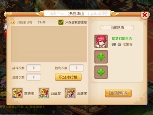 5.在决战华山活动中每次战斗结束后自动补满气血魔法,人物和宠物死亡没有损失。