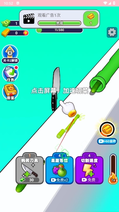 3、然后点击屏幕切菜即可