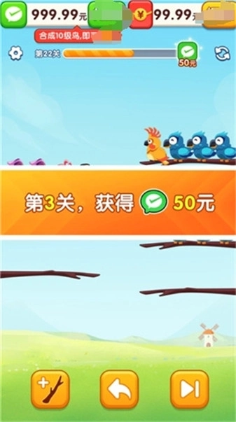 2、关卡难度会逐步提升,可能会增加小鸟的种类、颜色数量,也可能会调整树枝的布局等。