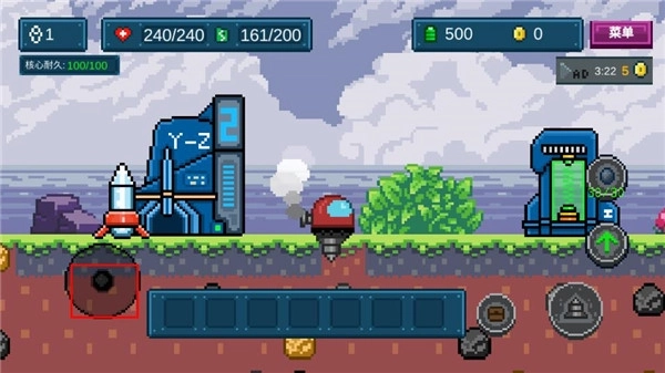 2、把移动杆向下拉动,然后点击右侧的钻头,就能进入地底世界了。