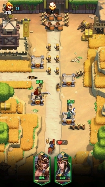 2、打破传统塔防的战斗模式,引入开放式塔防玩法,玩家能够自由规划防御塔与武将的布置。