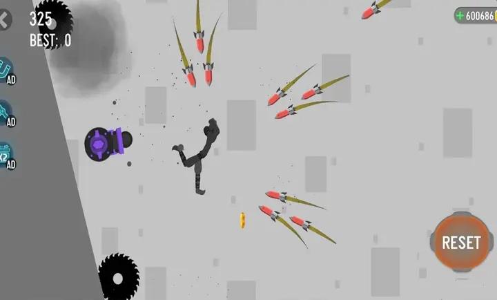 通过施展特技来应对致命的陷阱与障碍。长按可积蓄力量,将火柴人推落悬崖。
