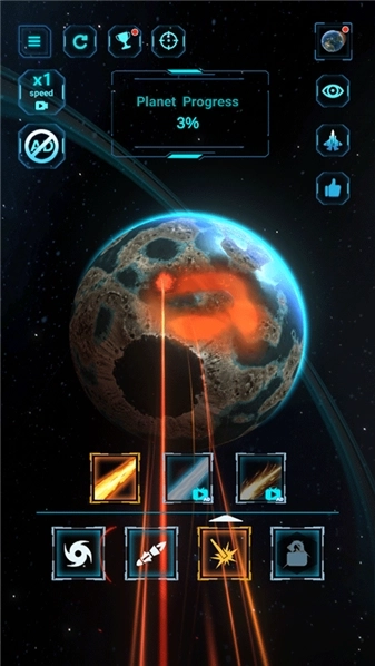 3、玩家可尝试使用不同武器攻击不同星球,观察其产生的各异破坏效果,这一过程没有任何难度。