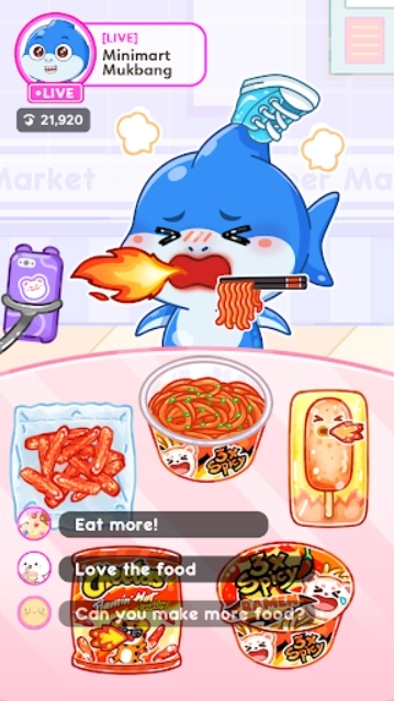3、令人愉悦的ASMR吃播音效、生动有趣的角色设定以及实时的直播互动,让玩家能够获得一种放松惬意的体验。