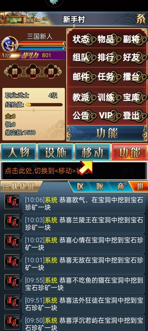 功能键涵盖的内容十分丰富,像状态、物品、副将、组队、排行、好友、任务、擂台等都包含在内。要是你想组队或者添加好友,都能在这里操作,功能相当全面。