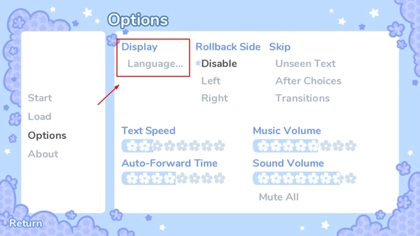 1、打开starryflowers最新版,点击右侧Options;