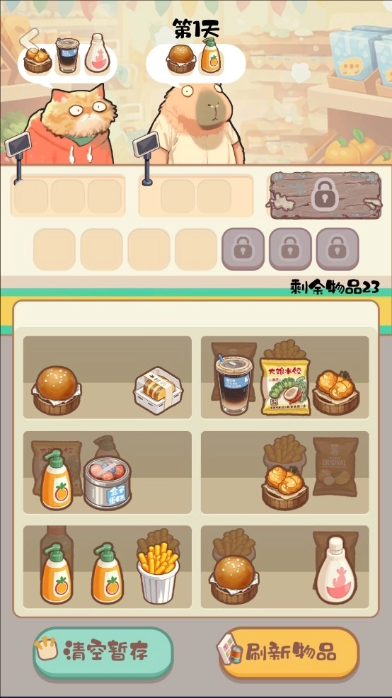 1、玩家得依据深夜顾客的各类需求,从货架上挑选出适宜的商品组合。