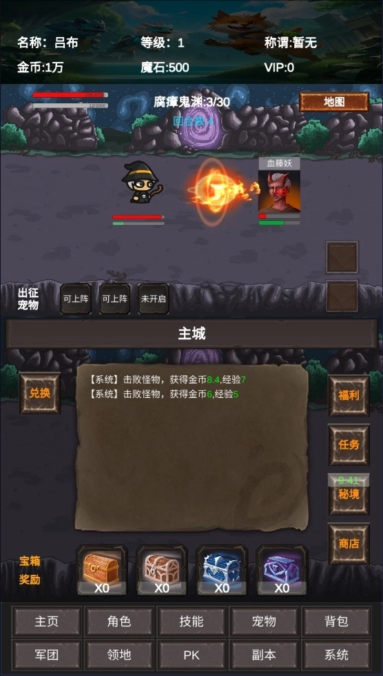 2、开启放置挂机,击败怪物,获得金币和经验奖励。
