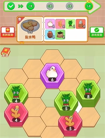 1、翻牌合成:这一玩法的核心在于通过翻牌找出相同的食材并完成合成,操作逻辑简单明了,很容易上手。