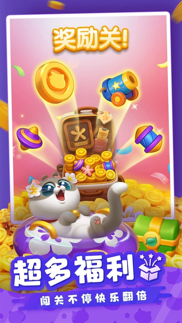 3、【民宿“猫老板”,呆萌可爱随时陪伴】《假日乐消消》头牌心灵理疗师是一只名叫毛毛的猫咪,无论闯关还是建造,它都陪伴左右——欢呼鼓励、傲娇卖萌,又或是调皮捣蛋。轻触屏幕,即可与它亲密互动。(放心,不会掉毛!