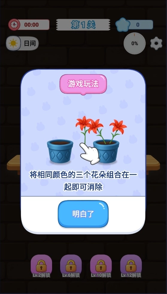 3、玩家需要在有限的时间内消除所以的花朵。