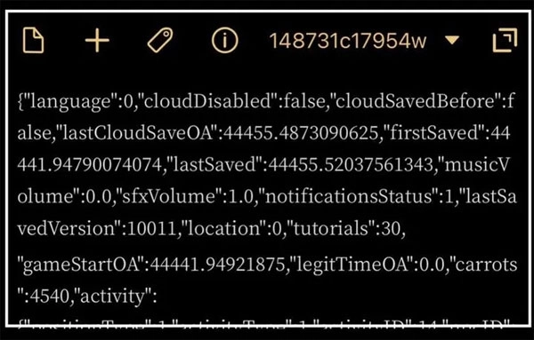 不过游戏设置中给我们准备了一个极其简单的方法:「把存档资料复制到剪贴板」,接着在你的系统备忘录(或者任何你习惯使用的文本编辑器)里粘贴一下,就能看到几万到十几万个数量不等的字符了。