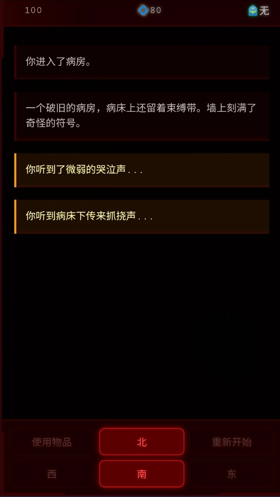 病院回廊是一款心理悬疑探索游戏,游戏全部以文字的形式呈现,在游戏中玩家需要判断自己的位置,在医院中选择方向进行前进或是后退,不断探索,最终逃离诡异的医院。对密室逃脱类题材感兴趣的小伙伴可以来体验一下。