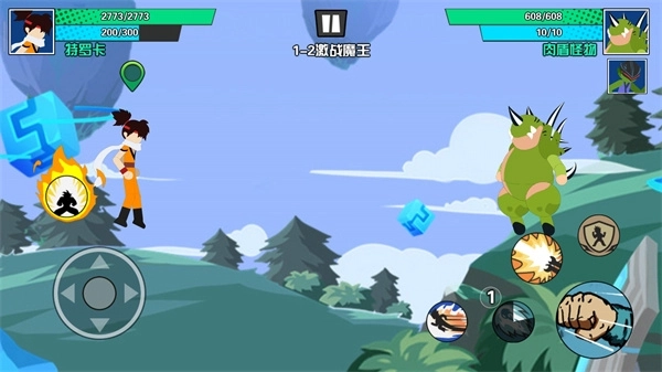 1、选用经典火柴人系列画风,搭配Q版卡通风格,采用2D横版操作模式,整体画面简约却不失丰富细节。